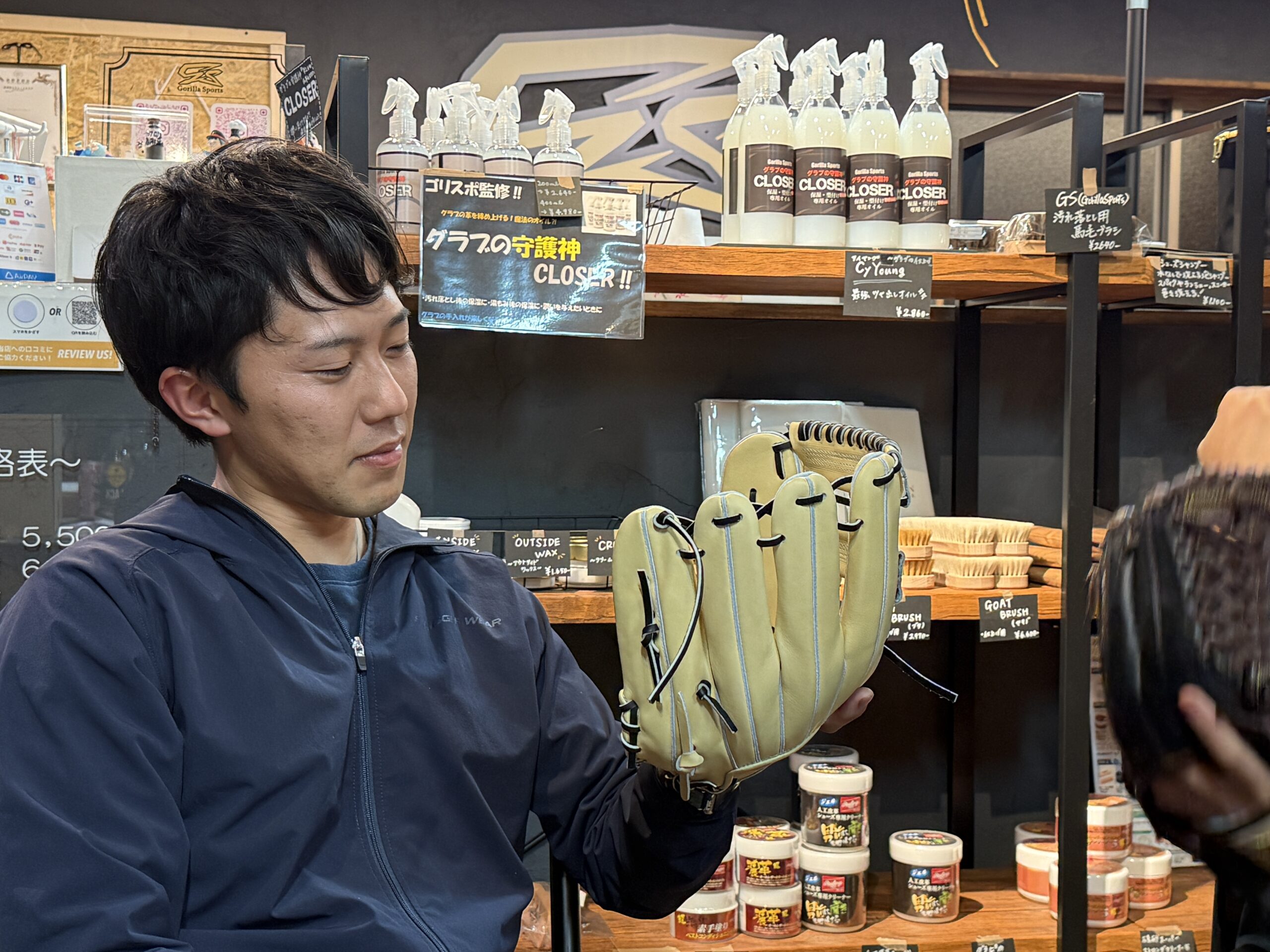 それが、型付け・リペア担当のカクちゃん。年間1,000個以上、累計5,000個を超えるグラブを”実戦仕様”に仕上げてきたその技術は、多くのプレイヤーから絶大な信頼を集めています。