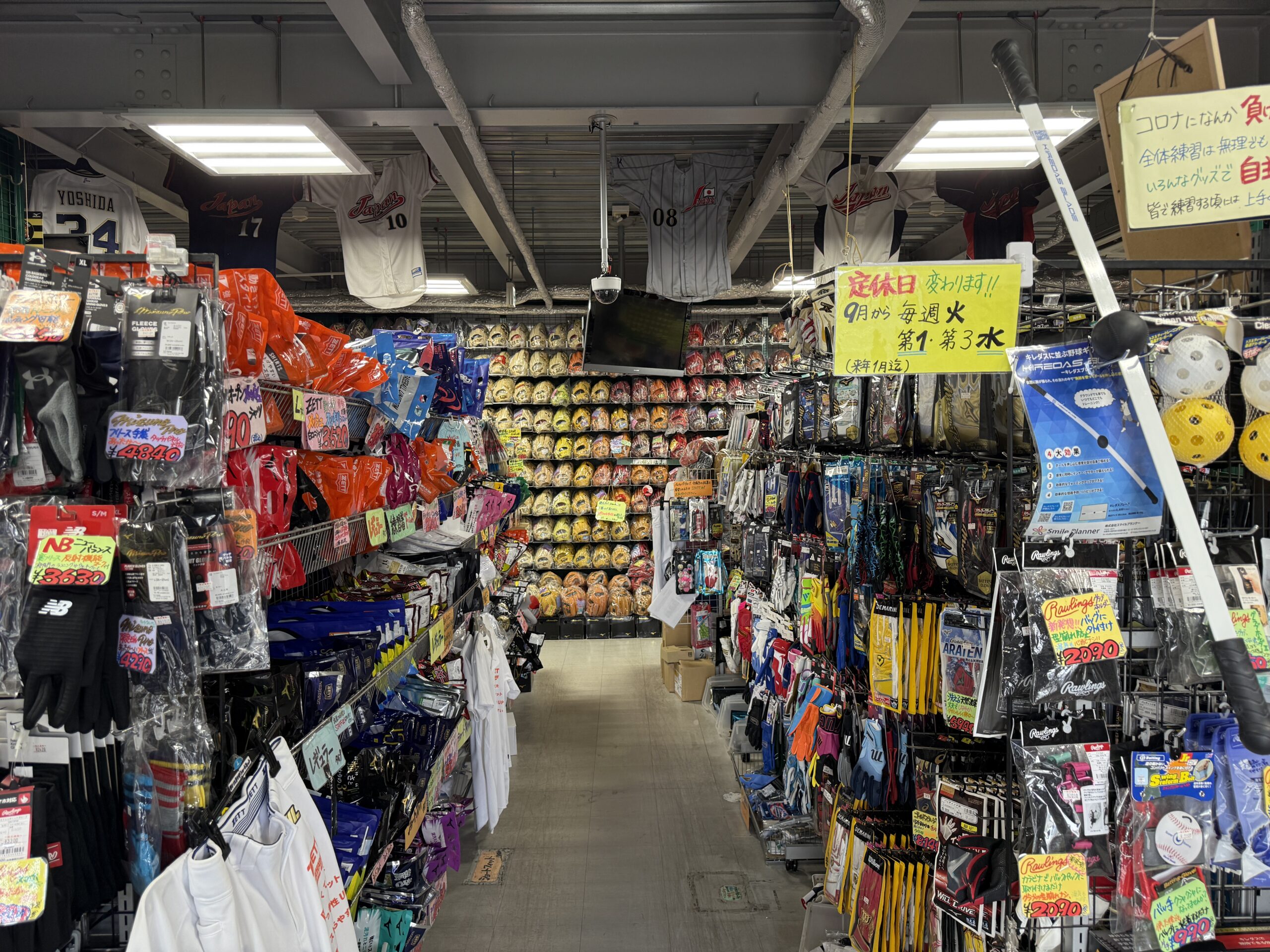 ミチイスポーツは、関西では知らない人がいないと言われるほど有名な野球用品専門店です。店内に入った瞬間に広がる圧巻の品揃えは、多くの野球人が「来るたびにワクワクする」「ここはテーマパークのようだ」と語るほど。
