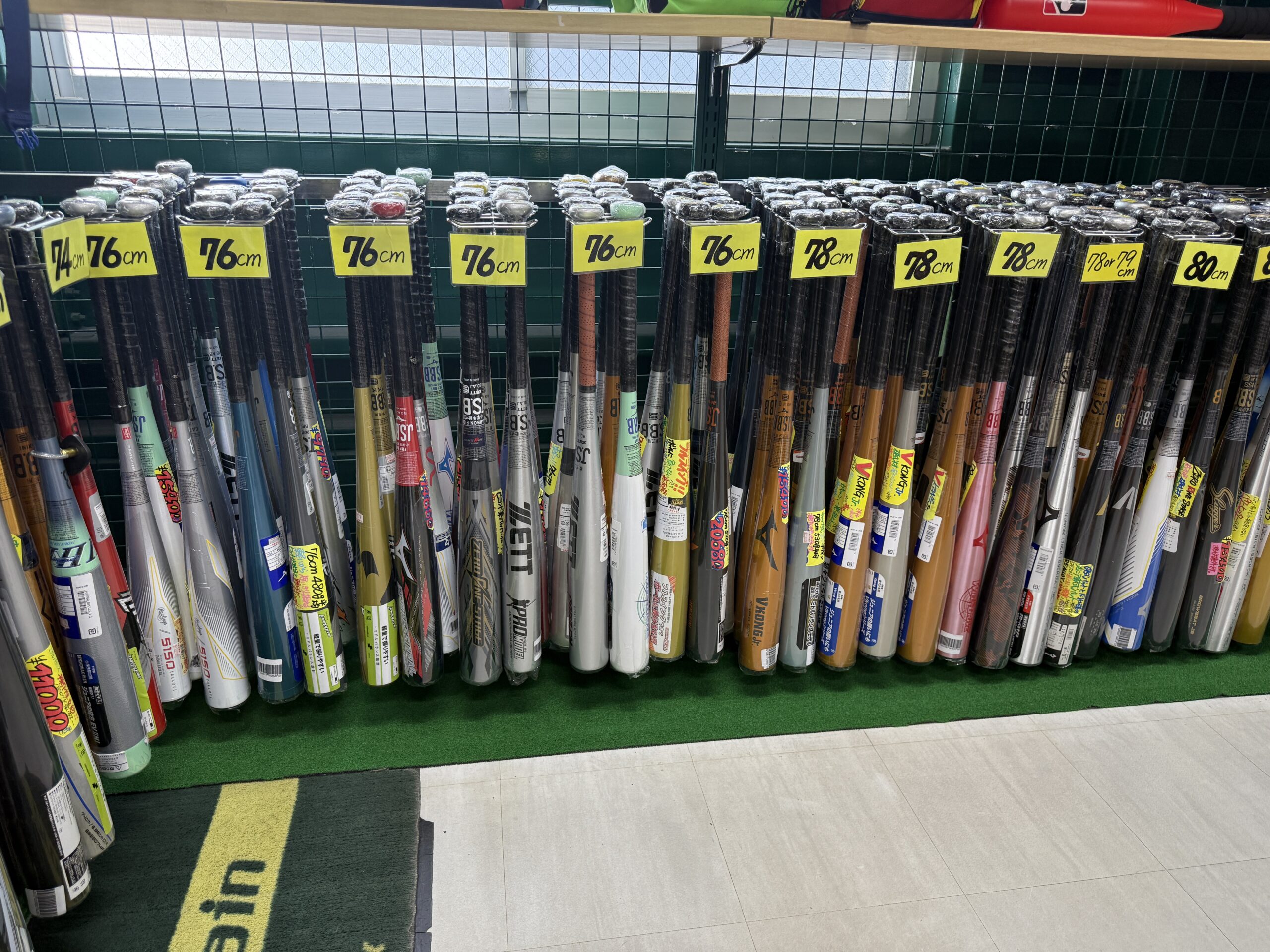 もちろん金属バット・木製バットも豊富で、人気モデルから最新作まで幅広く展開。野球を始めるために必要な道具がすべて揃う“総合力”もミチイスポーツの魅力です。