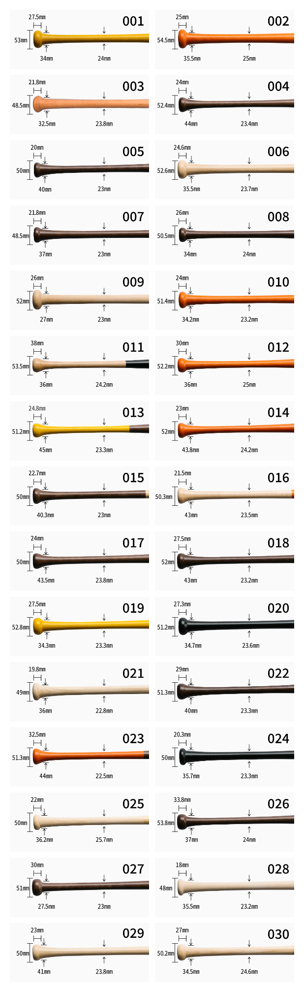 ハードメイプル(18,800円)カバ(国産バーチ)(16,500円)少年軟式用(16,500円)アオダモ(北海道産)(24,800円)