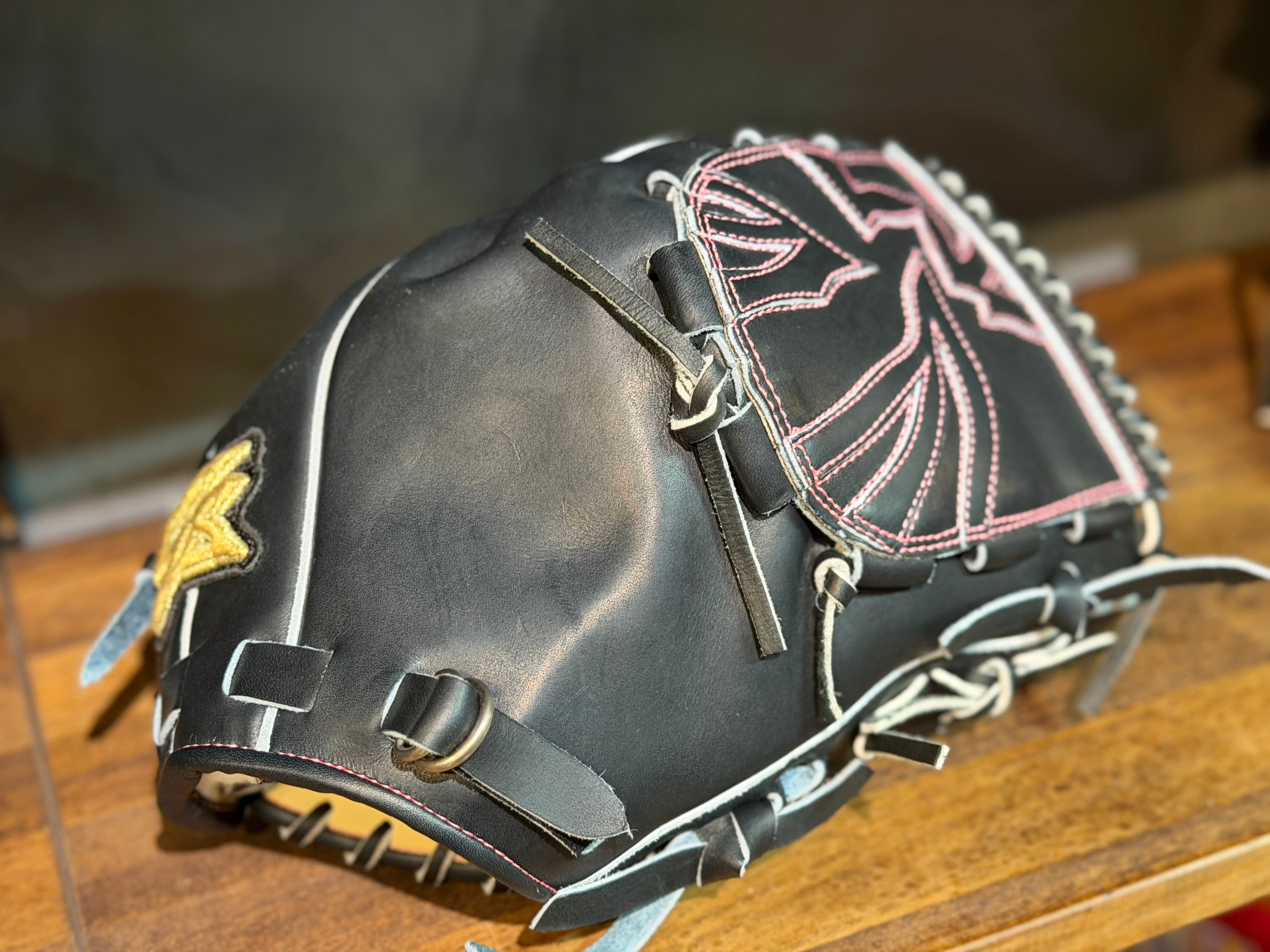 もちろん刺繍カスタムもできます。ネームや背番号、座右の銘を入れれば、唯一無二のグローブになります。