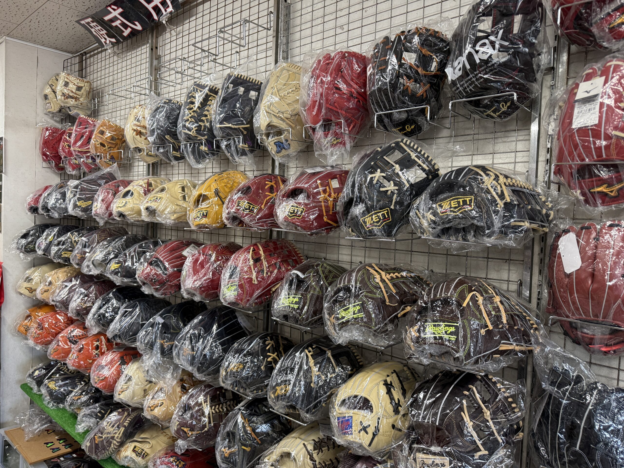 「GS」「WAZZE(わっぜぇ)」「ゼット」「てっぺん」「ローリングス」といったグローブを代表に、取り扱いメーカーは非常に豊富。今回見つけられたメーカーは、下記の通り。
