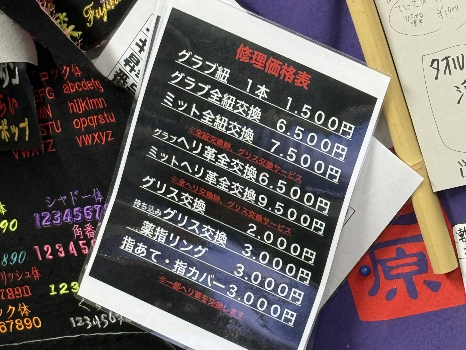 幅広く取り扱いされている辻原スポーツですが、よく売れるのは大手のグローブよりも「WAZZE(わっぜぇ)」「GSグローブ」「てっぺん」あたりとのことでした。